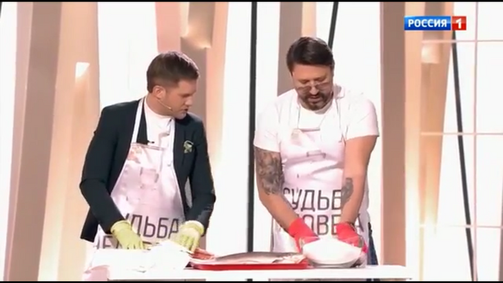Ведущий программы «Судьба человека» Борис Корчевников попросил актера показать, как правильно готовить слабосоленую рыбу.