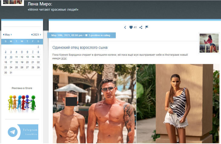 В личном блоге эпатажная Лена Миро в очередной раз высказалась о паре Курбана Омарова и Ксении Бородиной. На этот раз эксперт по российскому шоу-бизнесу обратила внимание на соцсети предпринимателя и поддержала слухи о скором разводе звезд.