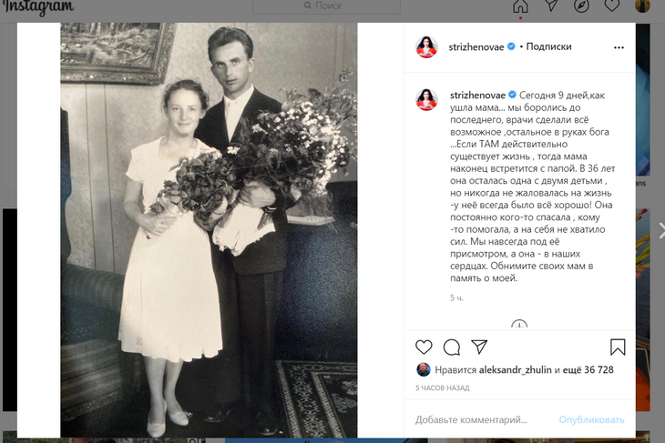 «Мы боролись до последнего, врачи сделали все возможное, остальное в руках Бога ...Если там действительно существует жизнь, тогда мама наконец встретится с папой», — выразила надежду Стриженова.