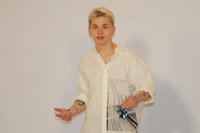 И если мимика Милохина почти не изменилась, то внешность у парня совершенно другая: крашеные волосы, четыре сережки в ушах, брекеты и бусы с единорогом.