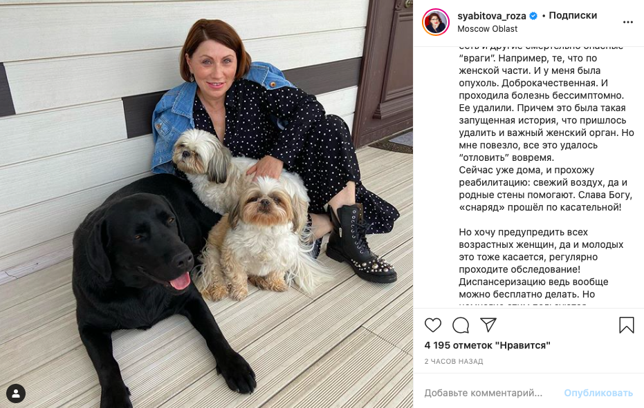 «У меня была опухоль. Доброкачественная. Ее удалили. Причем это была такая запущенная история, что пришлось удалить и важный женский орган — матку. Но мне повезло, все это удалось отловить вовремя», — поделилась Роза в Instagram, добавив, что «снаряд прошел по касательной» .