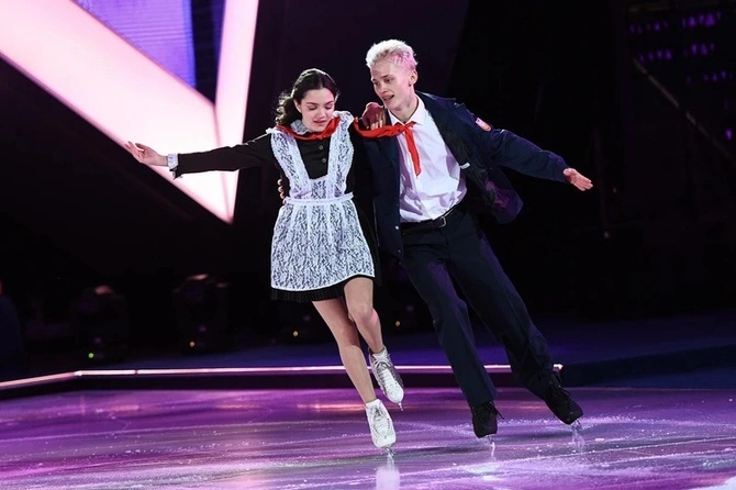 В четвертом выпуске «Ледникового периода» тиктокер Даня Милохин и спортсменка Евгения Медведева предстали перед зрителями в образе пионеров. Пара выступала под песню «Зурбаган» Владимира Преснякова. Все было хорошо, пока в самом конце блогер не упал два раза подряд. Однако строгий Илья Авербух заставил Даню повторить элементы без ошибок.