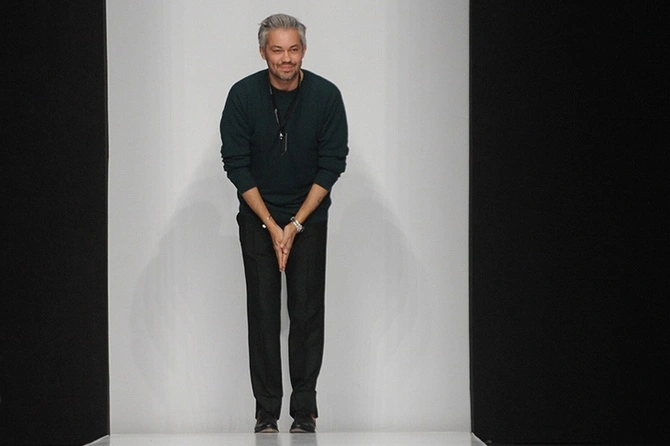Известный российский стилист и телеведущий Александр Рогов шокировал публику, представив коллекцию жакетов на модели-мужчине, который был в колготках и туфлях на шпильках.