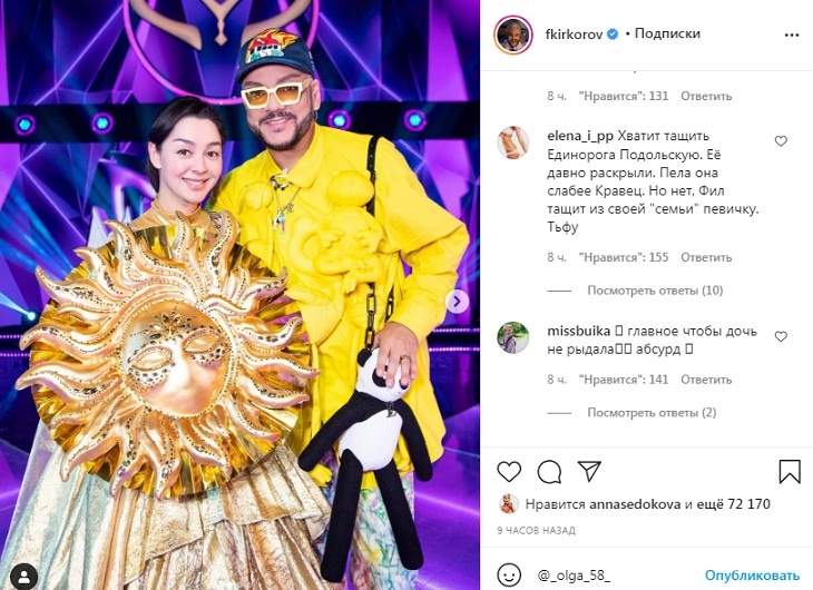 Но все же основная масса хейта окатила председателя жюри Филиппа Киркорова, который, чтобы не расстраивать свою дочь Аллу-Викторию, оставил в проекте Единорога и заставил разоблачиться юмористку Марину Кравец.