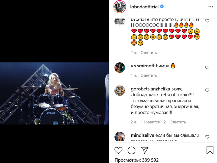 «Это выступление показало всем российским артистам, что такое уровень. Лучшая»; «Это была бомба»; «Не перестаешь удивлять, малышка!»; «Это невероятное выступление!»; «Атмосфера — огонь. Женщина-космос»; «Круто!»; «Спасибо за сногсшибательный номер!»; «Неожиданно»; «Не знала о таких ваших способностях»; «Лобода, ты просто чумовая!» — высказались поклонники.