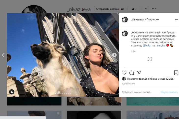 На днях же Ольга продемонстрировала свой главный аргумент в борьбе за сердце очаровательного красавца — объемную грудь. На фото актриса появилась вместе с собакой Грушей, которую Ольга и Данила в свое время забрали из приюта.
