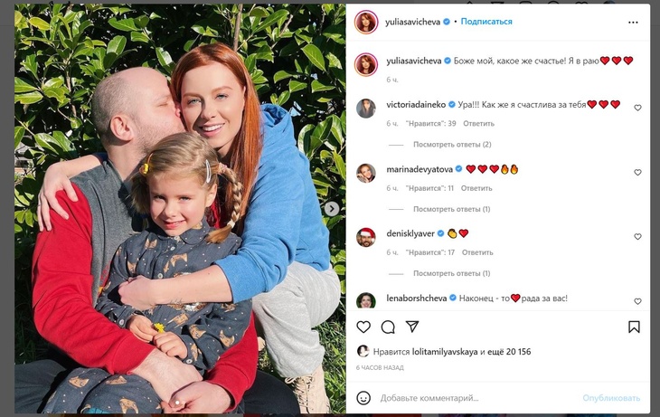 На своей странице в Instagram звезда опубликовала совместные снимки с дочерью и супругом Александром Аршиновым.