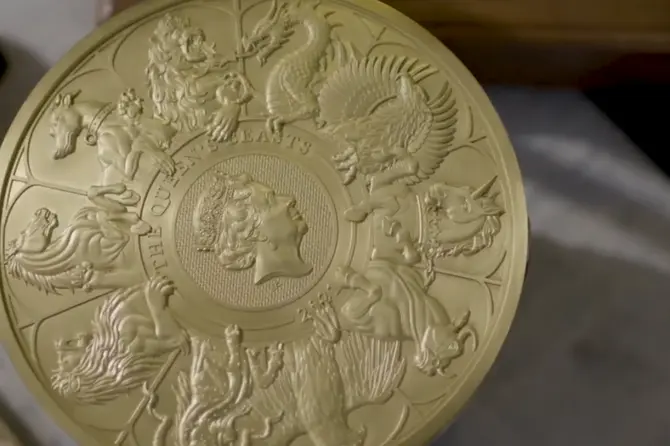 Королевский монетный двор Великобритании выпустил «венец» коллекции «Звери королевы» — золотая монета имеет диаметр около 20 сантиметров и весит 10 килограммов. Об этом сообщается в Instagram монетного двора.